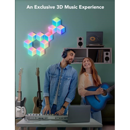 Ti, kteří mají rádi více barev, si zamilují funkci segmentového ovládání barev, které umožňuje technologie RGBIC. Přizpůsobte si barvu každé sekce 3D panelu podle sebe a vytvořte tak unikátní osvětlení, které bude přesně podle vašich představ, vkusu a nálady. Každý panel má 3 části pro zobrazení barvy a efektů, které mohou vytvořit plastický 3D obraz.