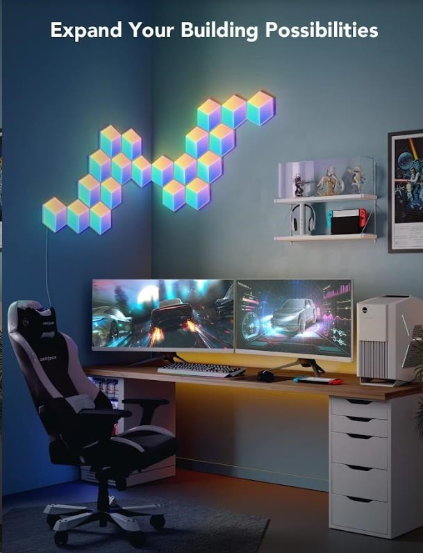 Ti, kteří mají rádi více barev, si zamilují funkci segmentového ovládání barev, které umožňuje technologie RGBIC. Přizpůsobte si barvu každé sekce 3D panelu podle sebe a vytvořte tak unikátní osvětlení, které bude přesně podle vašich představ, vkusu a nálady. Každý panel má 3 části pro zobrazení barvy a efektů, které mohou vytvořit plastický 3D obraz.