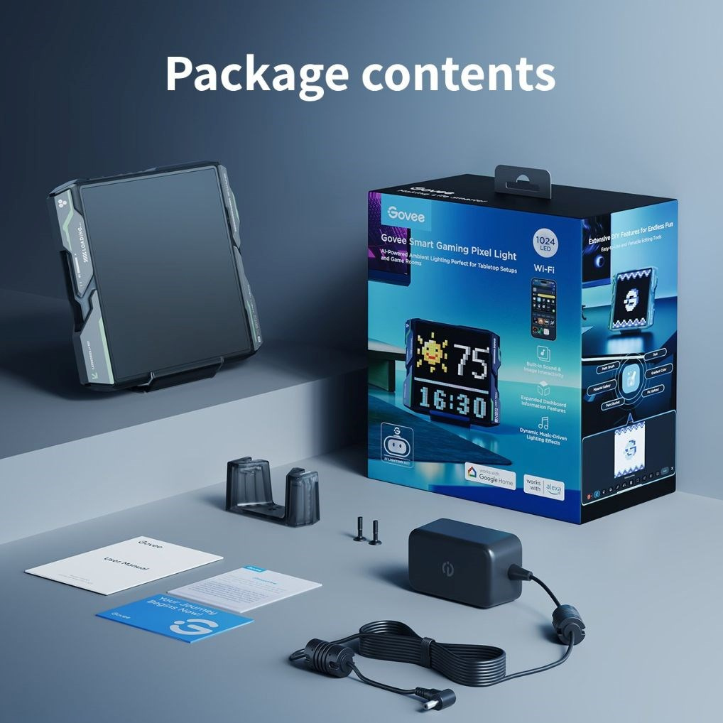 S více než 150 přednastavenými scénami a možností zobrazování aktuálních informací, jako jsou počasí, čas, ceny kryptoměn nebo sportovní výsledky, se stává vaším každodenním asistentem. Díky aplikaci Govee Home můžete nahrávat vlastní obrázky a GIFy nebo v aplikaci využít AI Lighting Bot pro generování unikátního pixelového umění.