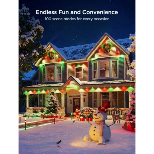 Permanentní světla na dům byla navržena pro maximální efekt s minimálním úsilím. Jednoduchost ovládání zajistí, že svůj čas můžete trávit s blízkými, a ne s technologií. 16 milionů barev, 100 scén, DIY režim pro vlastní návrhy, a navíc AI generované scény podle vašich příkazů