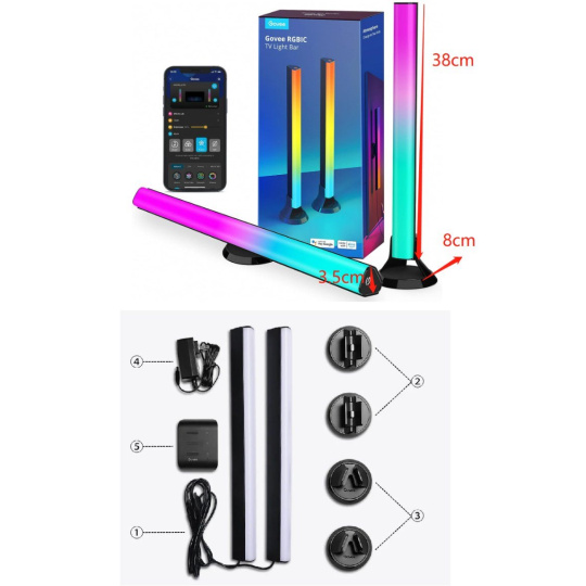 - Ovládání přes aplikaci Govee Home nebo ovládací box