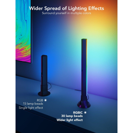 Vylepšete své bydlení a zážitky při sledování filmů, hraní her a poslechu hudby s chytrými světelnými panely od Govee. Tyto panely zvednou kvalitu vašeho televizního zážitku na novou úroveň. Můžete je ovládat hlasem prostřednictvím Siri, Amazon Alexa nebo Google Assistant, pomocí mobilní aplikace nebo prostřednictvím ovládacího boxu. Díky univerzálním držákům můžete panely kreativně umístit a přizpůsobit svým potřebám, ať už je to na televizi nebo kdekoli jinde v místnosti. Navíc k modernímu vzhledu vašeho interiéru přispívá barevné osvětlení, které opticky zvětšuje obraz, chrání vaše oči a má životnost až 50 000 hodin. Tyto panely jsou ideální pro instalaci jako podsvícení za televizí o úhlopříčce od 43 do 75 palců.