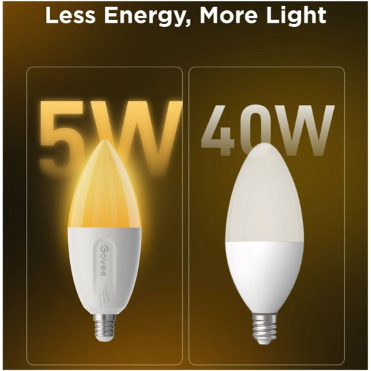 Chytré žárovky E14 Govee B600C jsou tu pro dokonalé moderní osvětlení vašeho domova. Jejich svítivost je 400 lumenů při příkonu 4,8 W. Žárovky používají technologii RGBWW, tedy 16 mil. barev a k tomu různé teploty bílé. Žárovku lze tedy používat jako dekorativní osvětlení, ale také jako hlavní zdroj bílého světla s rozmezím teploty 2700-6500 K s indexem podání barev 80 Ra a stmívatelností v rozmezí 1-100 %. To stačí na pokrytí celého dne a všech druhů aktivit jako je práce, relaxace nebo usínání a probouzení. Žárovky se díky energetické a tepelné šetrnosti nepřehřívají a vydrží tak svítit mnoho let. Ovládání je možné aplikací Govee Home, Google Home a hlasem pomocí asistentů Google, Alexa i Siri. Navíc jsou kompatibilní s Matter. Několik žárovek je možné seskupit pro pohodlnější ovládání. Aplikace nabídne mnoho přednastavených scén, které se hodí pro každou příležitost a díky mikrofonu umí žárovky i vizualizovat hudbu. Žárovky se připojují přes Bluetooth pro rychlé lokální ovládání, nebo Wi-Fi pro vzdálenou kontrolu. Díky ní můžete žárovky libovolně ovládat a časovat v případě, že nejste doma a předejít tak tomu, aby se vaše obydlí stalo cílem zlodějů.