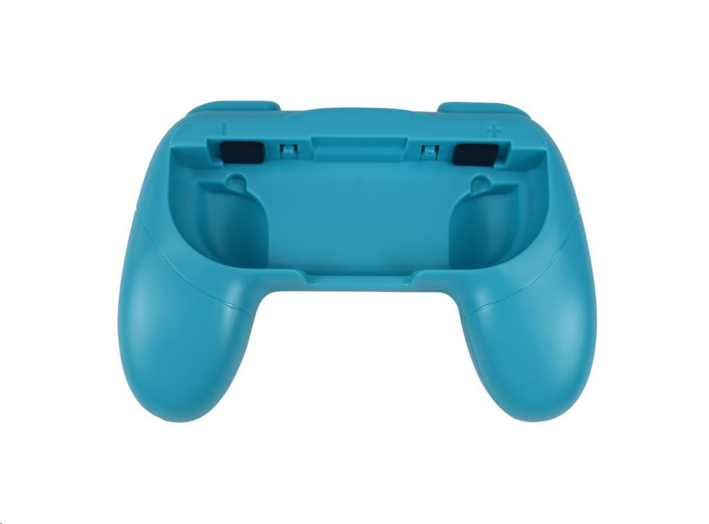- Grip 'n' Play Controller Kit obsahuje 2x úchyty ovladačů (1 neonově červený a 1 neonově modrý) a 2x palcové úchyty (1 neonově červený a 1 neonově modrý) navržené pro ovladače Nintendo Switch™ Joy-con™