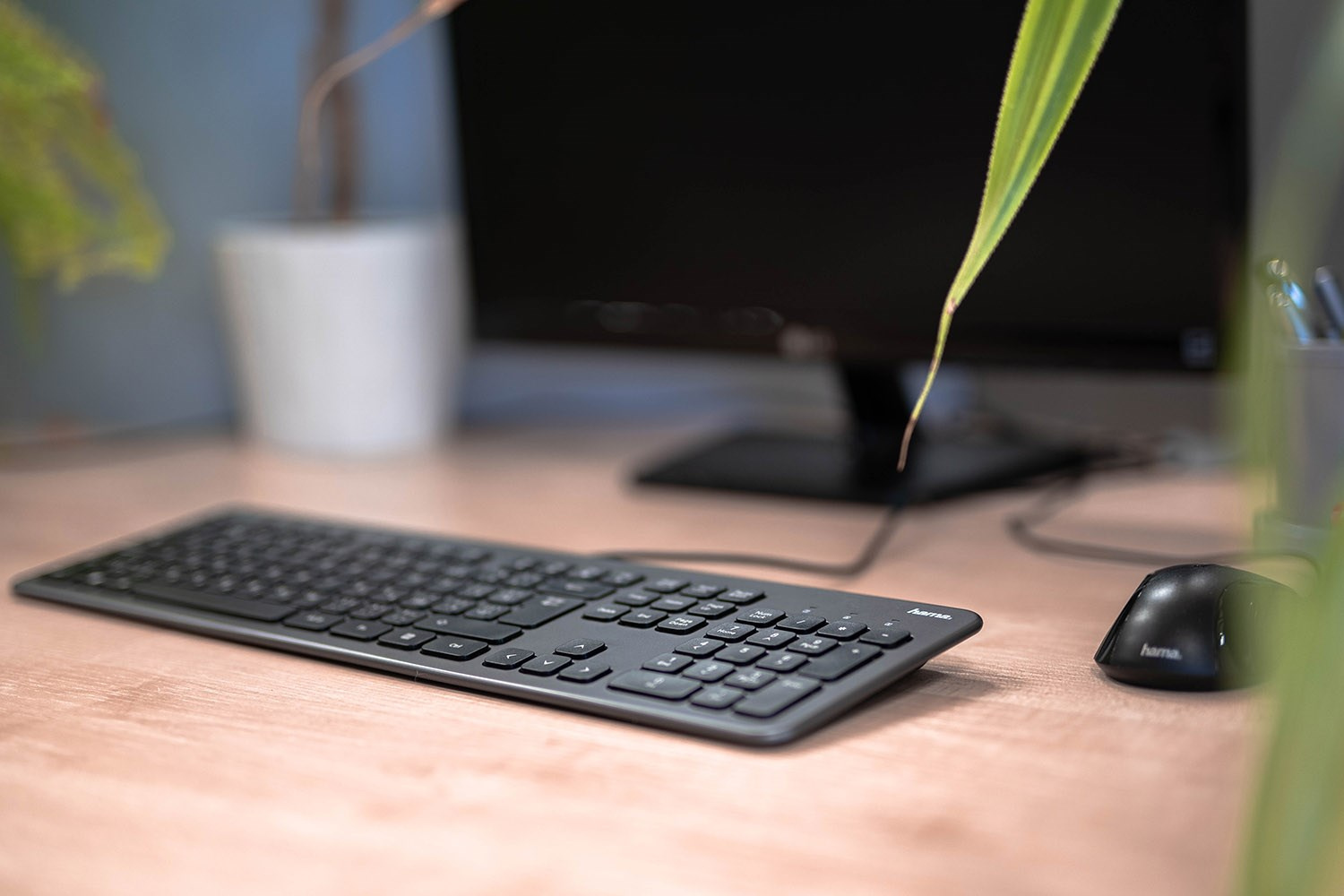 - elegantná tenká klávesnica pre zadávanie údajov do PC alebo notebooku
