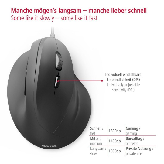 Hama vertikální ergonomická kabelová myš EMC-500, 6 tlačítek, černá
