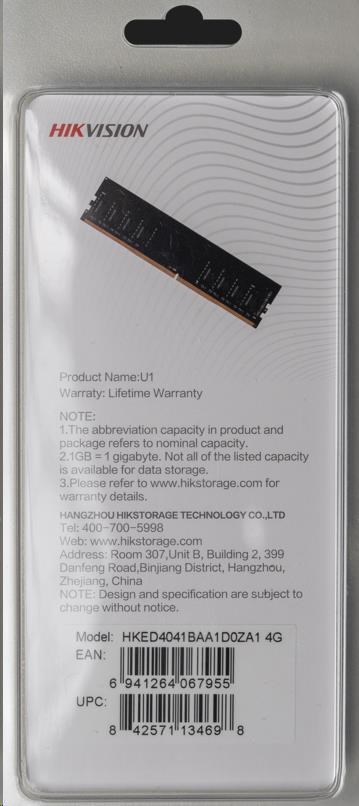 HIKSEMI memory module U1 is a DDR4 memory , which is manufactured by using original high-quality granules and mature production technology to make it more compatible, work stable