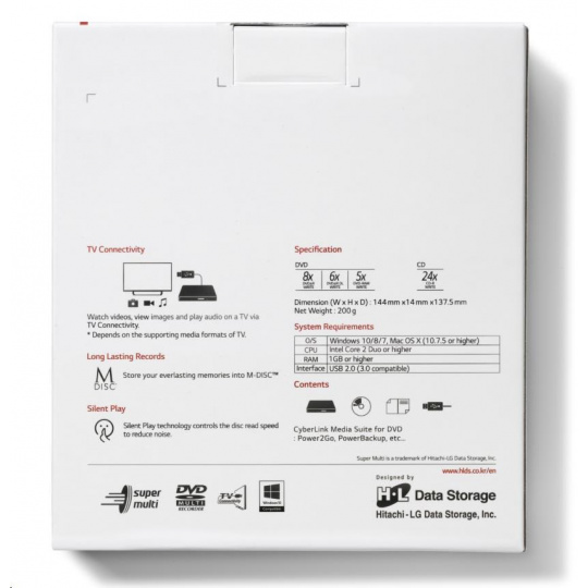 HITACHI LG - externí mechanika DVD-W/CD-RW/DVD±R/±RW/RAM GP60NS60, Slim, Silver, box+SW