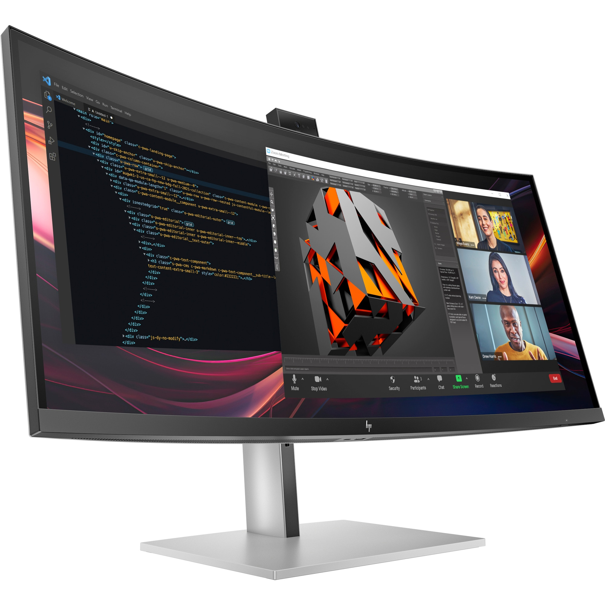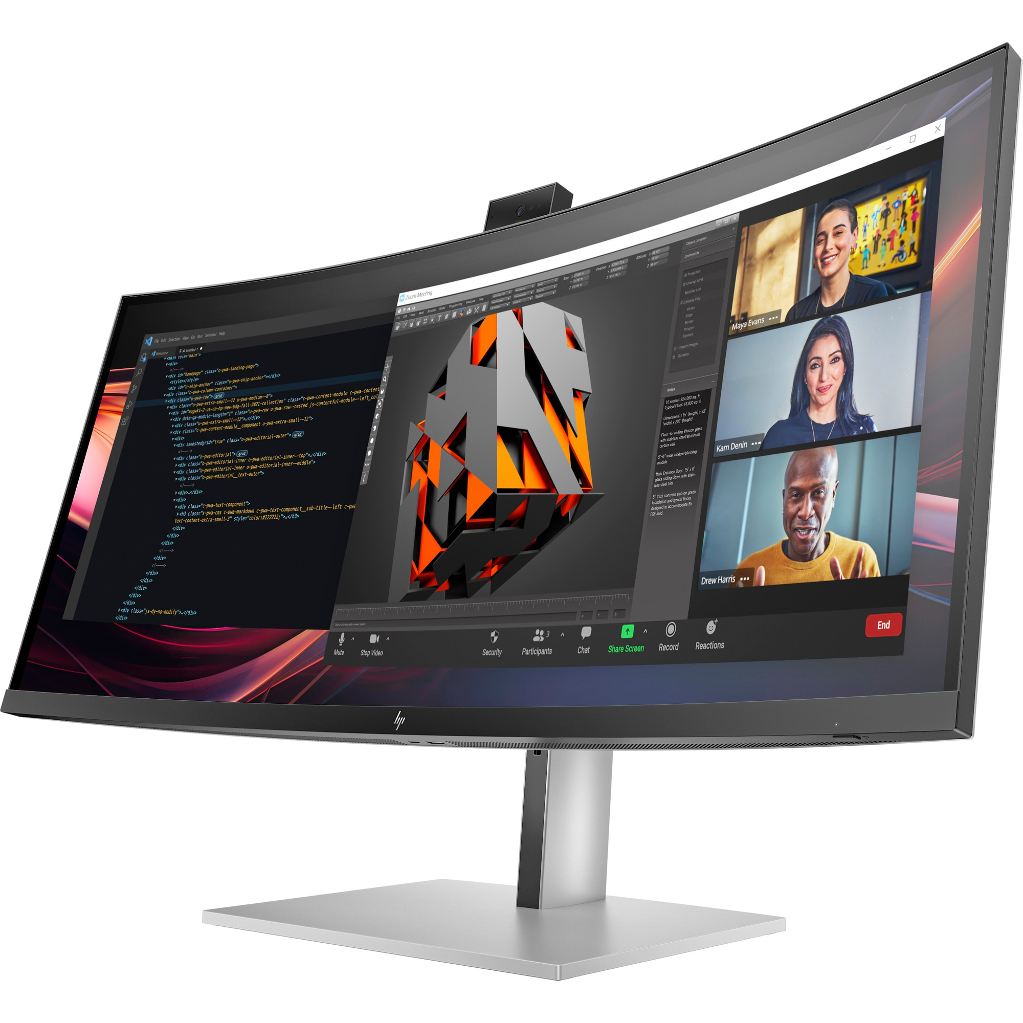 HP 734pm 34 Curved 3440 x1440, IPS,2000:1, 400nits,5ms, HDMI 2.0, DP 1.4, USB3-C,5xUSB-A 4x3W spkr, Cam, RJ-45,TB 4-100W