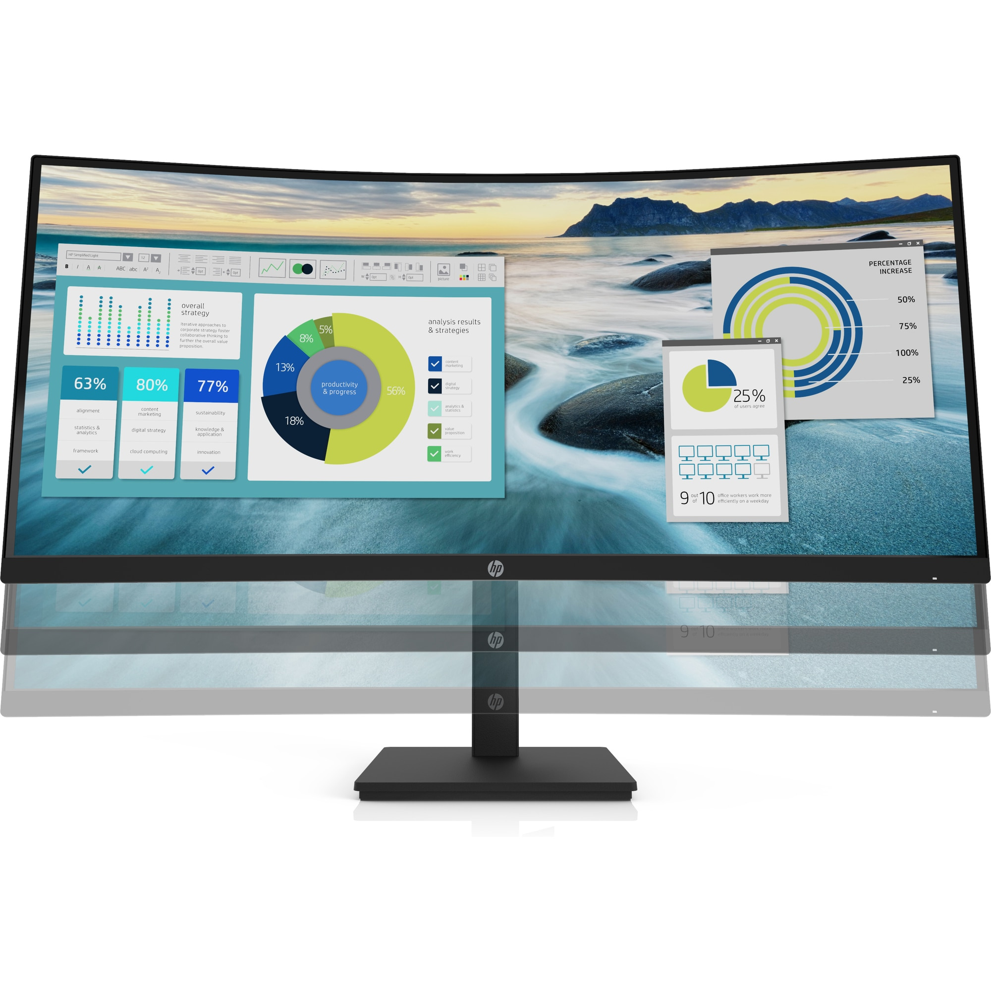 Nechte se pohltit tímto 86,36cm (34") prohnutým displejem s ostrým rozlišením WQHD a integrovaným reproduktorem. Tento monitor nabízí mnohem větší obraz, představuje tak ideální volbu pro uživatele, kteří vyžadují multitasking a vyšší produktivitu.