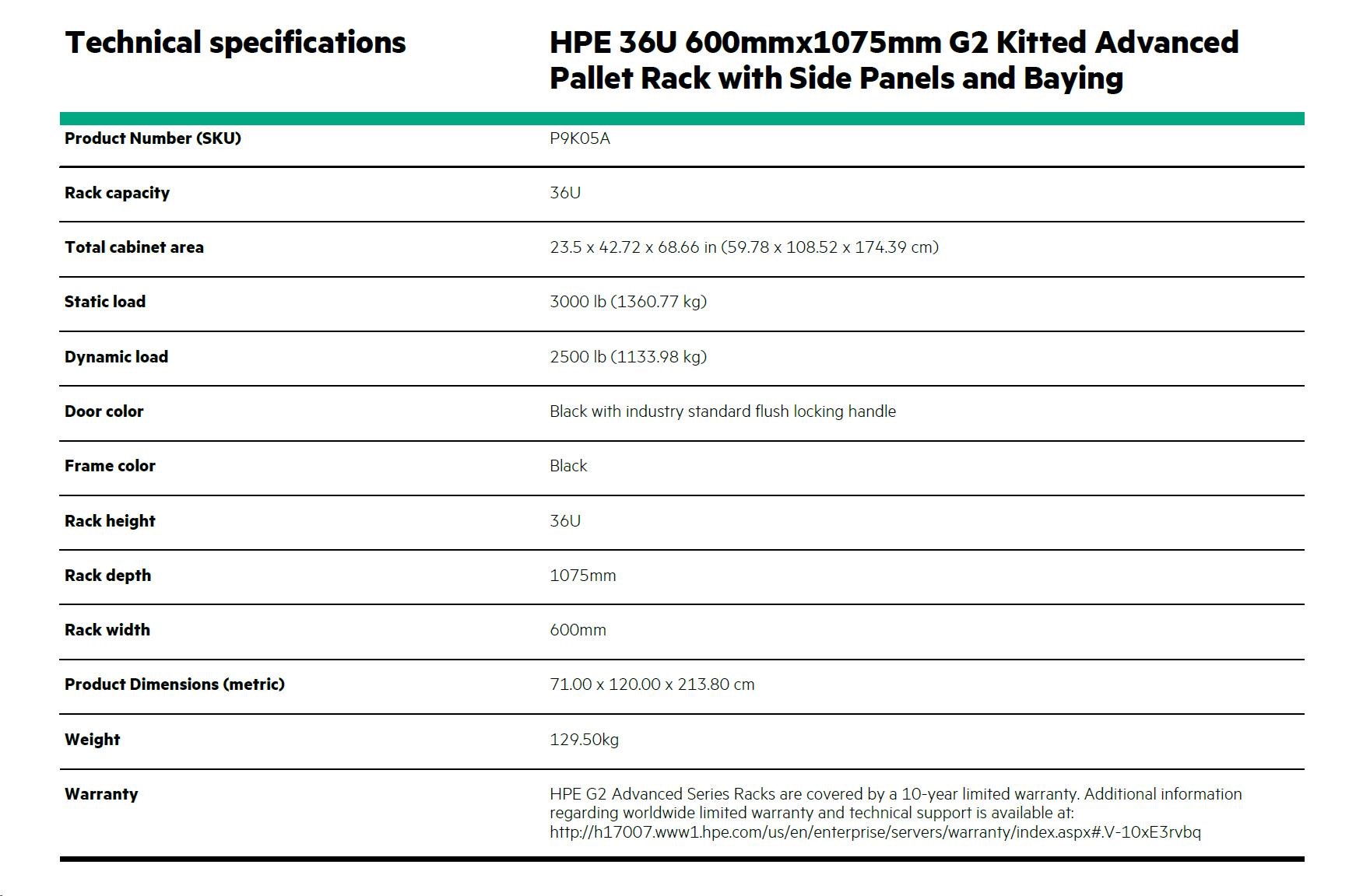 HPE 36U 600mmx1075mm G2 Kitted Advanced Pallet Rack with Side Panels and Baying.