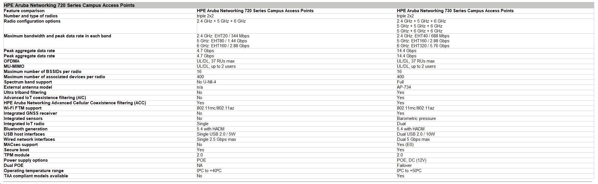 HPE Aruba 720 vs 730 Series Access Points Comparison