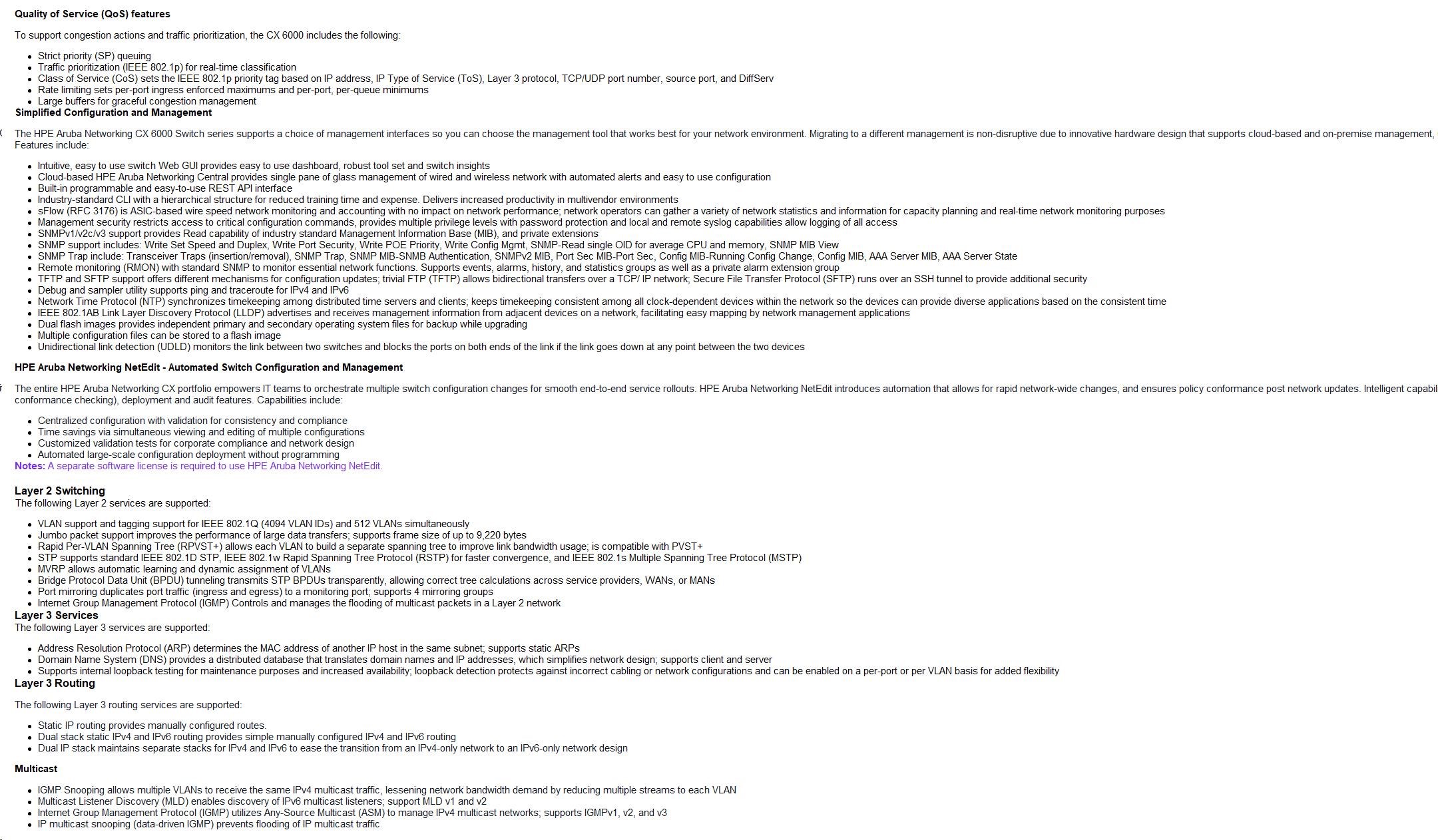 HPE Aruba Networking CX 6000 48G 4SFP Switch.