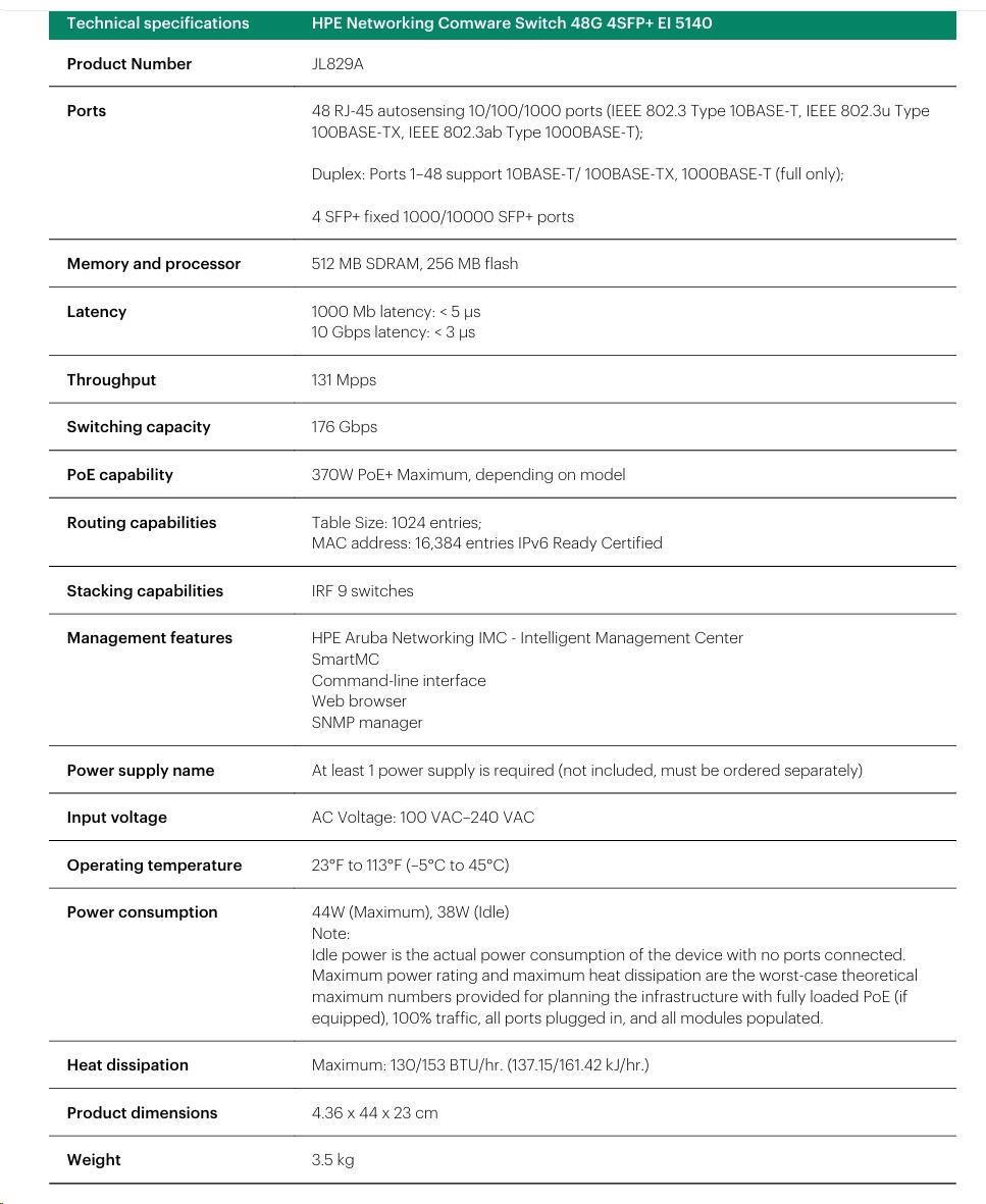 | HPE Networking Comware Switch 48G 4SFP+ EI 5140 | JL829A |