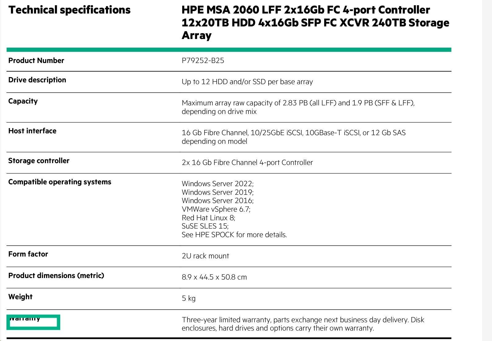 HPE MSA 2060 LFF 2x10/25GbE iSCSI Array.