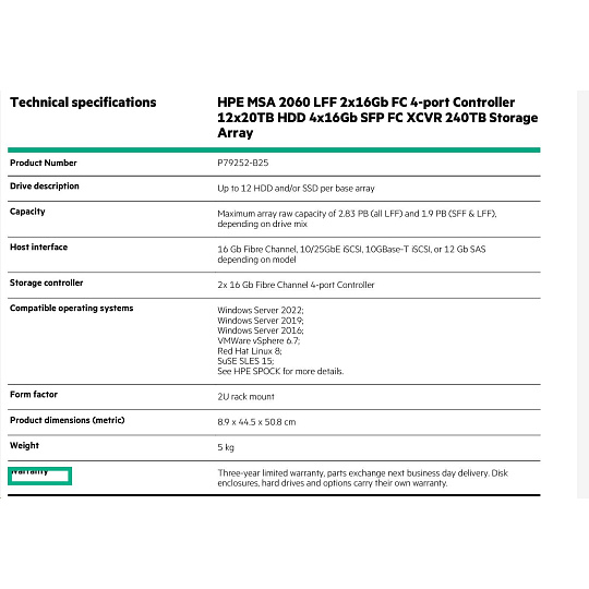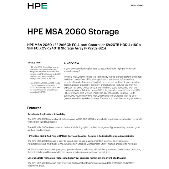 HPE MSA 2060 LFF 2x16Gb FC 4p Array.