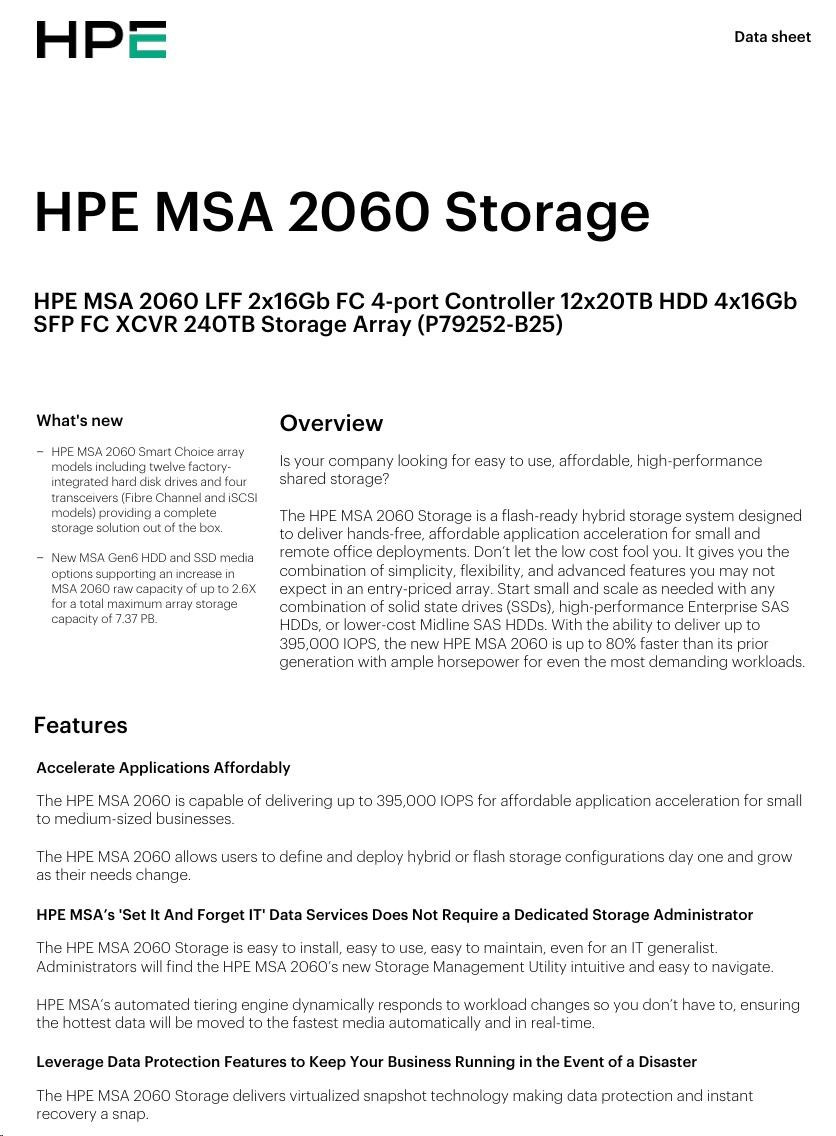 HPE MSA 2060 LFF 2x16Gb FC 4p Array.