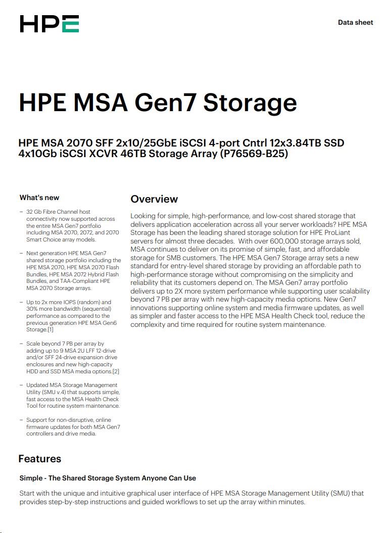 HPE MSA 2060 SFF 2x10/25GbE iSCSI Array.