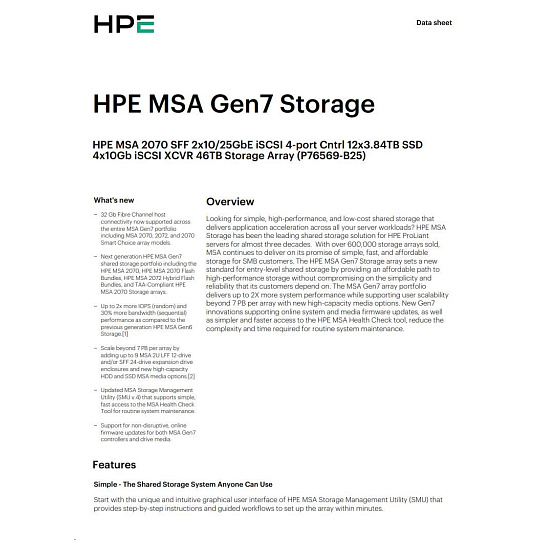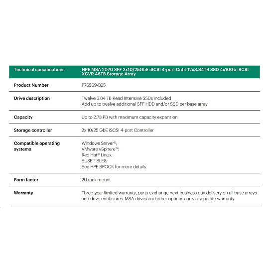 HPE MSA 2070 SFF 2x10/25GbE iSCSI Array.