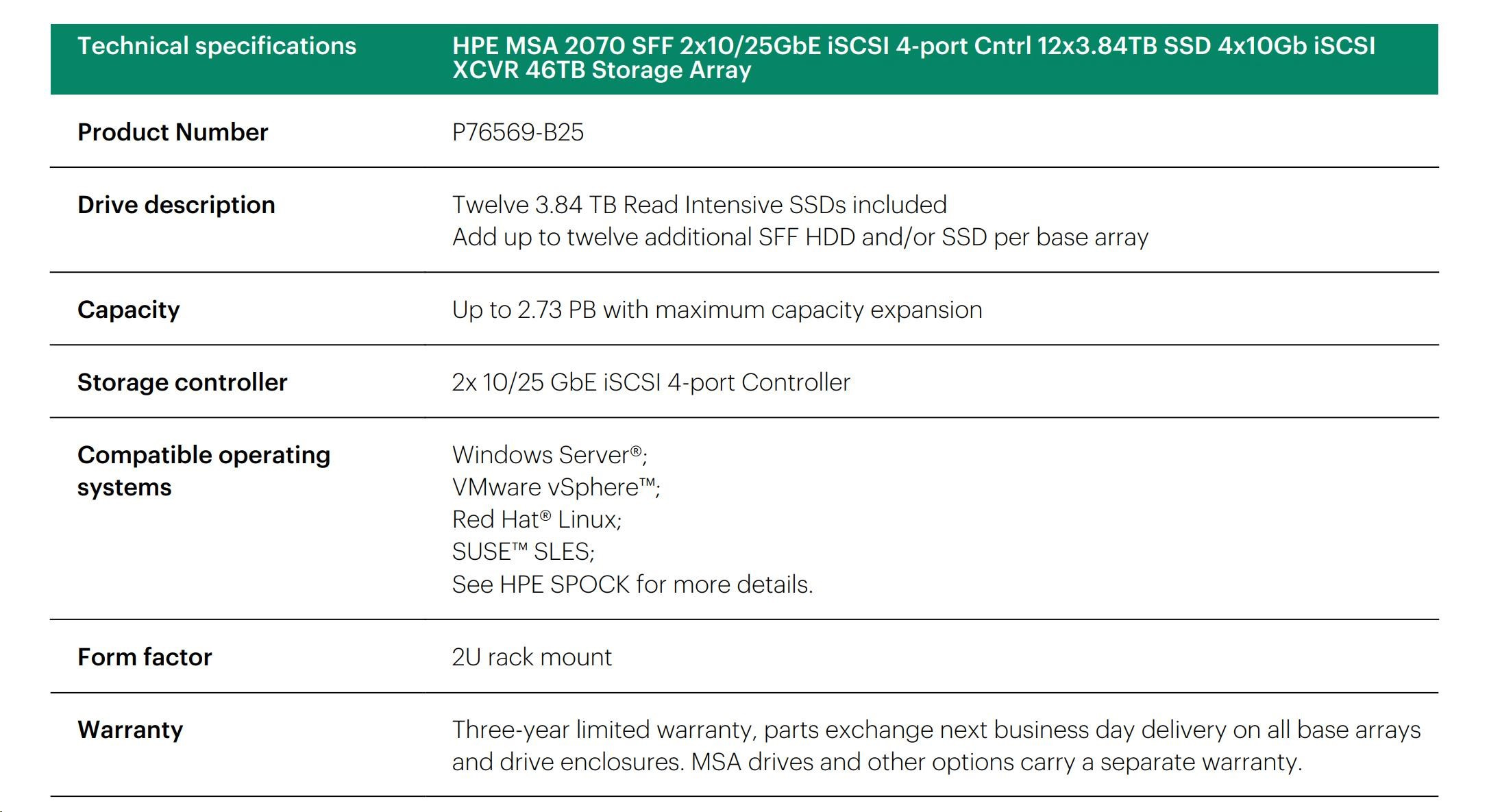 HPE MSA 2070 SFF 2x32Gb FC 4p Array.