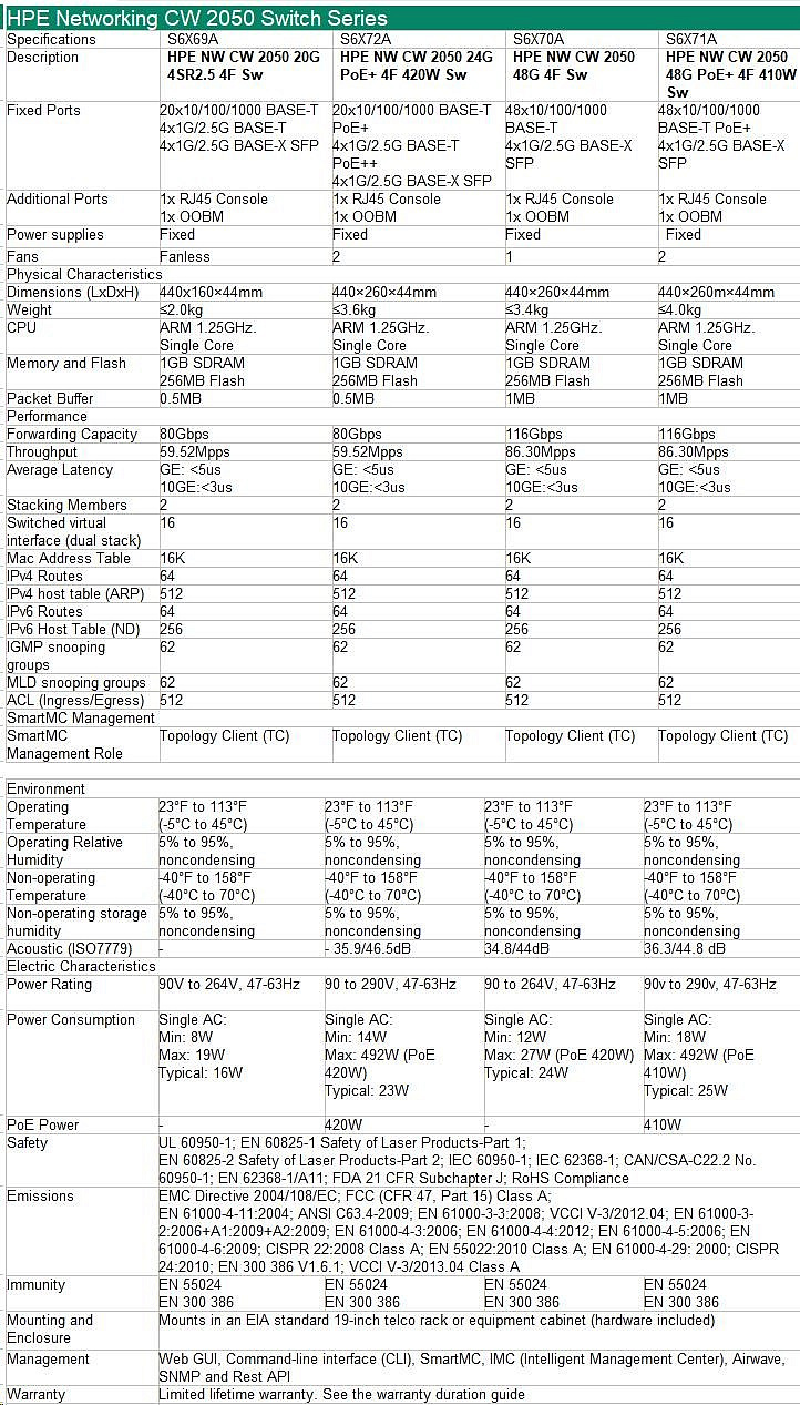 HPE Networking CW 2050 20p 10/100/1000BASE-T 4p Smart Rate 1/2.5GbE 4p SFP 1G/2.5G Switch.