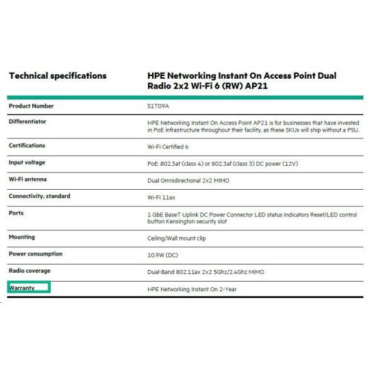 HPE Networking Instant On AP21 (RW) Dual Radio 2x2 Wi-Fi 6 Access Point (S1T09A)