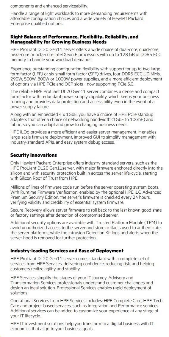 HPE PL DL20g11 E-2434 (3.4G/4C) 1x32G 2x2TB/7.2k SATA VROC 2LFF-HP 4x1Gb 290W Smart Choice