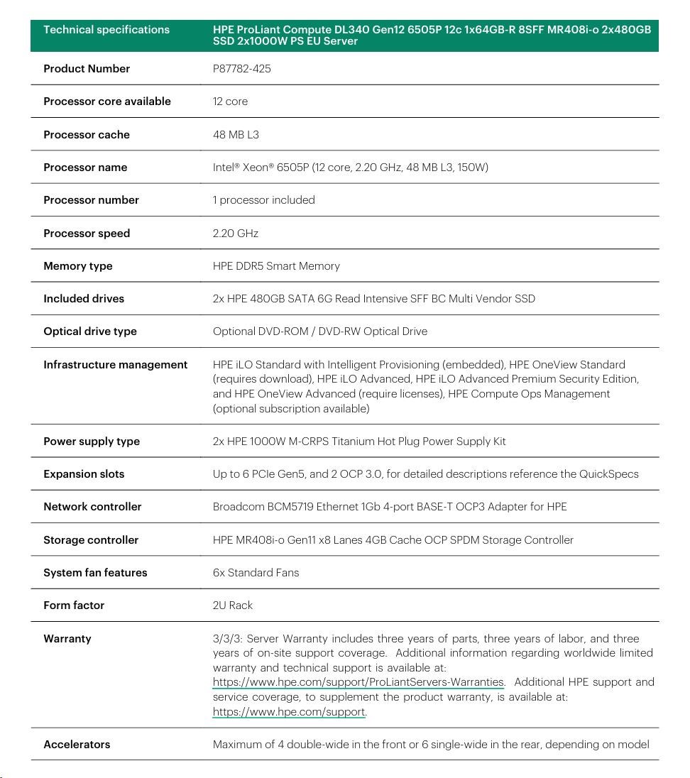 HPE PL DL340g12 6505P (2.2/12C) 4x32G (P69727) MR408i-o 8SFF 2x1000W NBD333 Smart Choice.