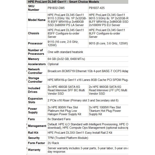 HPE PL DL345g11 AMD Epyc 9015 (3.6G/8C) 2x32G 2x960G 2x1000W MR416i-p 8LFF 4p1G Smart Choice (P81837-425)