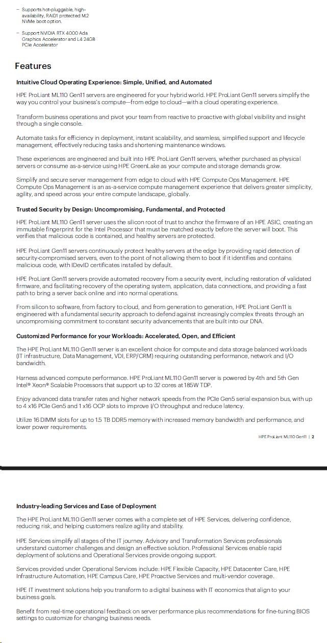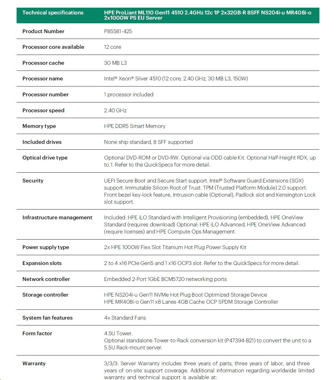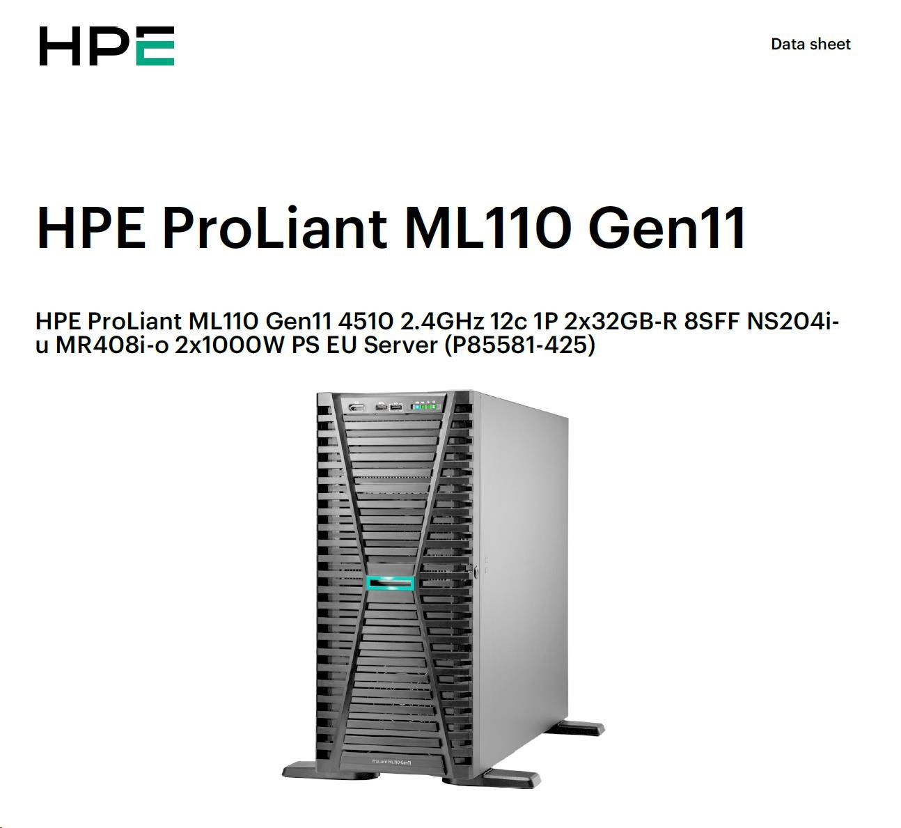 HPE PL ML110g11 4510 (2.4G/12C) NS204(2x480) 2x32G (P64706) MR408i-o 2x1000W 8SFF 2x1G NBD333 Smart Choice.