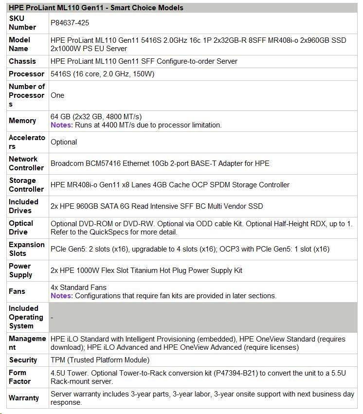 | HPE ProLiant ML110 Gen11 - Smart Choice Models | |