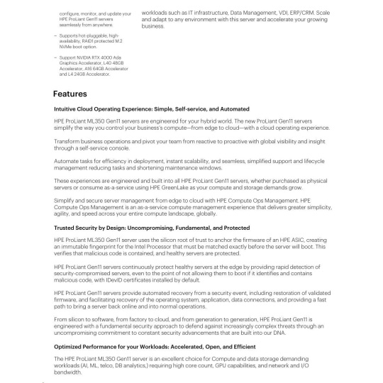 HPE PL ML350g11 4510 (2.4G/12C) 2x32G (P64706) NS204(2x480) MR408i-o 2x1000W 8SFF 4p1Gb Smart Choice.