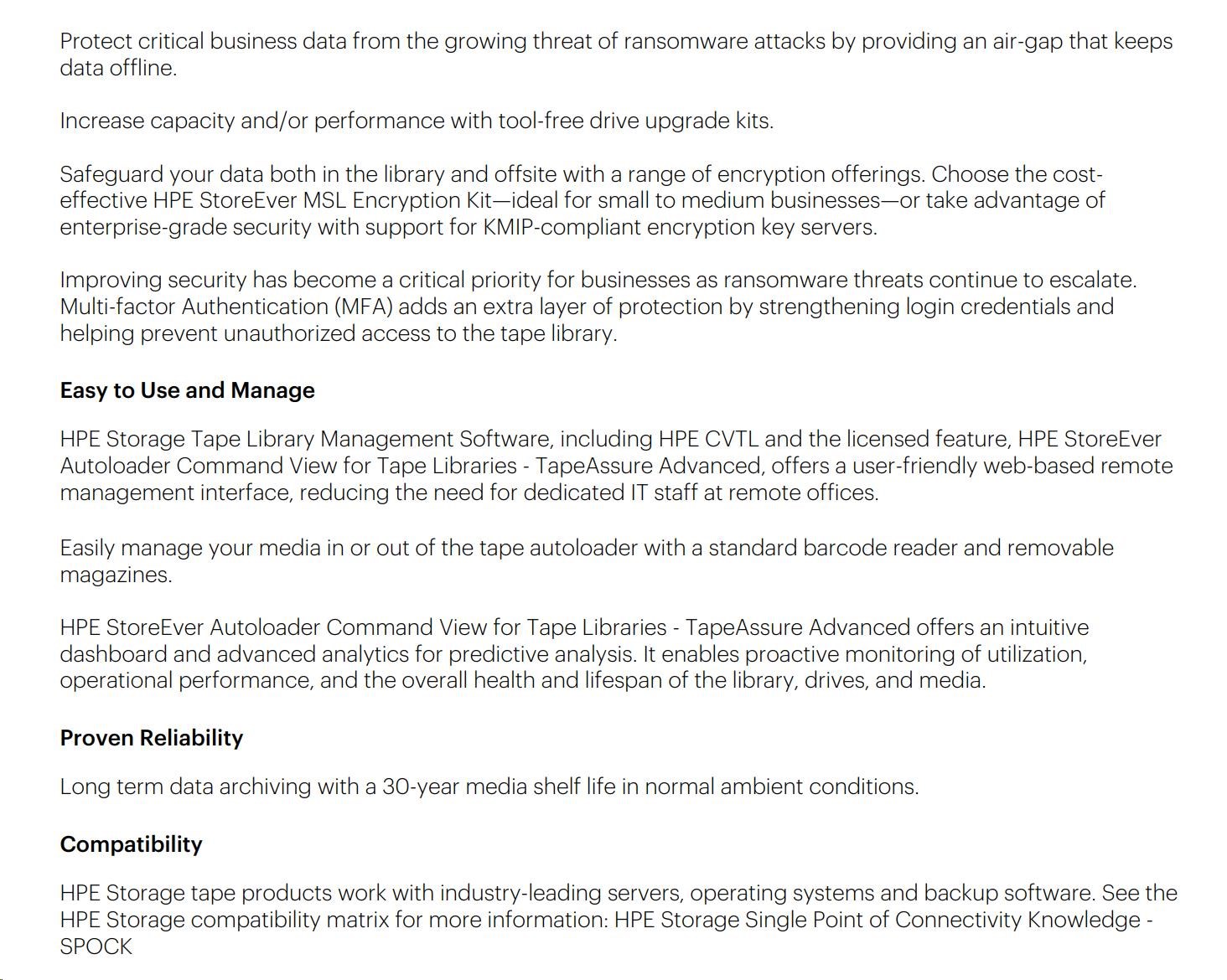 HPE Storage MSL 1/8 Tape Autoloader 1x MSL LTO-8 Fibre Channel 5x LTO-8 30TB Data Cartridges.