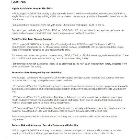 HPE Storage MSL3040 Tape Library 1x MSL LTO-9 Fibre Channel 20x LTO-9 45TB Data Cartridges