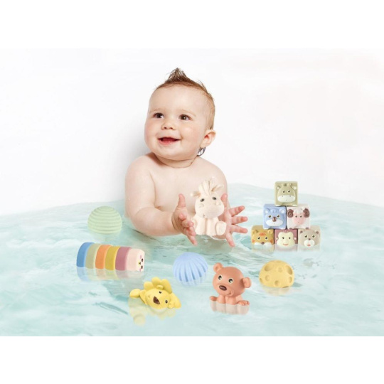 Sada hraček do vody 4v1, s roztomilými zvířátky, promění každou koupel v zábavnou hru. Míčky, kostky a zvířátka se postarají o to, že koupání ve vaničce, vaně nebo v bazénku nebude nuda. Zvířátka v různých podobách se rozhodně vody nebojí a jsou pro každou legraci. Při hře s hračkami do vody děti zdokonalují motorické dovednosti, koordinaci očí a rukou a užijí si spoustu legrace..
