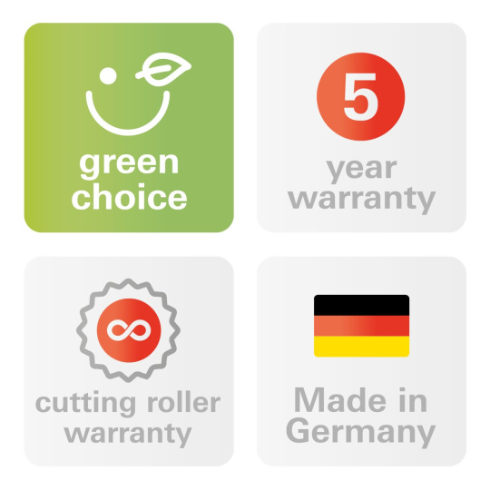 Záruka na stroj 60 měsíců, doživotní záruka na nože.