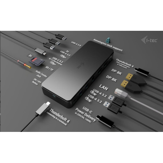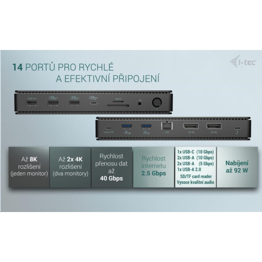 i-tec Thunderbolt4 2x Display Docking Station Gen3, 7x USB, 2.5 GLAN + PowerDelivery 92 W