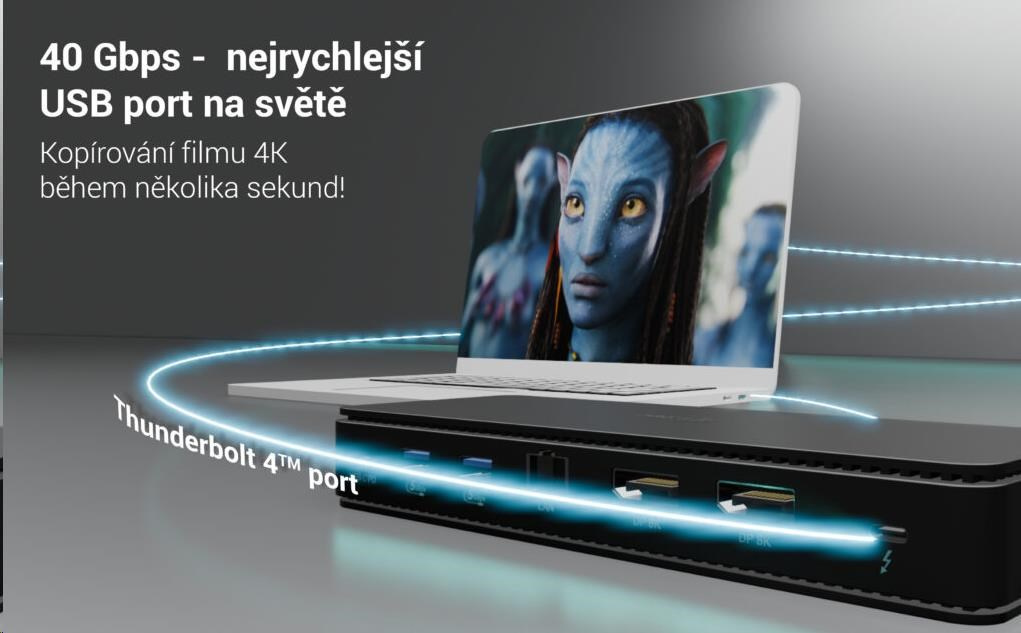 Výjimečný výkon, ultrarychlý přenos dat a podpora rozlišení až 8K. Jedna z nejvýkonnějších dokovacích stanic na trhu!