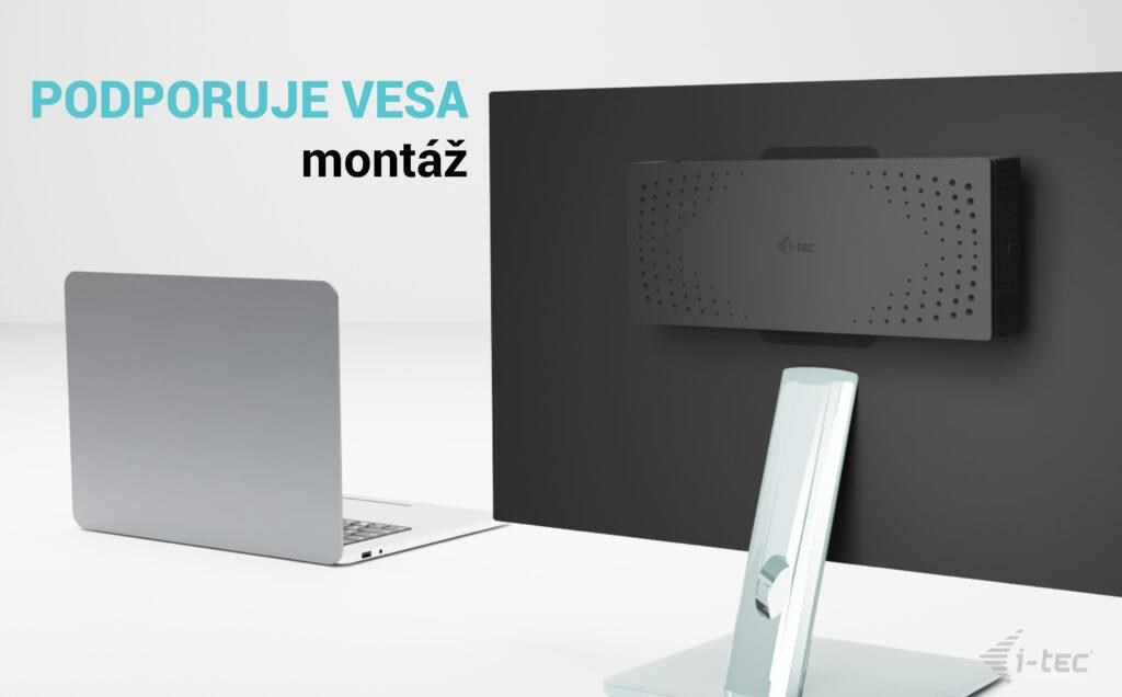 Dokovací stanici lze nainstalovat za monitor (pokud podporuje standardní držák VESA), pomocí i-tec VESA mount.