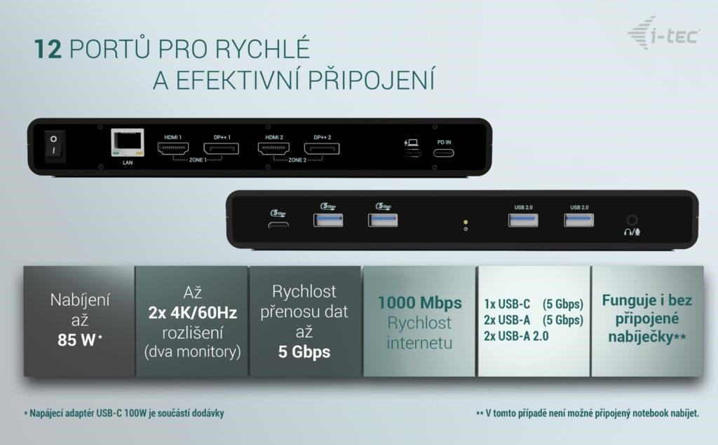 Výkonná, přitome cenově dostupná dokovací stanice, která podporuje výstup až na dva externí monitory ve vysokém rozlišení, a to až 4K/60 Hz. Dokovací stanici lze použít prakticky se všemi notebooky, protože podporuje připojení ke všem běžným portům: 3.0, USB-C, USB4 a Thunderbolt“ 3/4 a zároveň podporuje všechny běžné současné operační systémy.