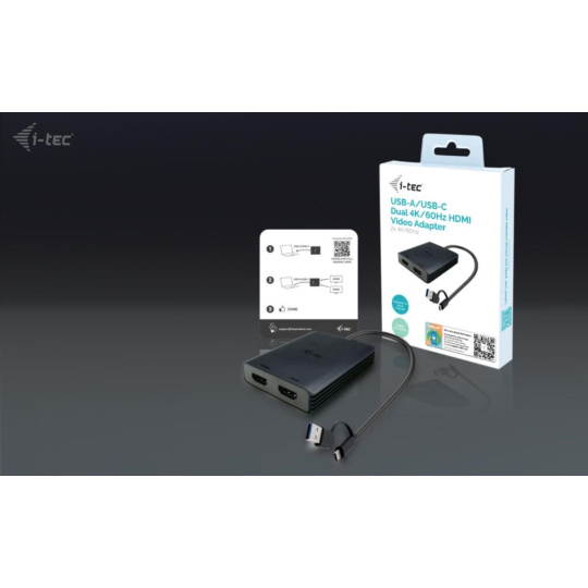 i-tec USB-A/USB-C Dual 4K/60 Hz HDMI Video Adapter