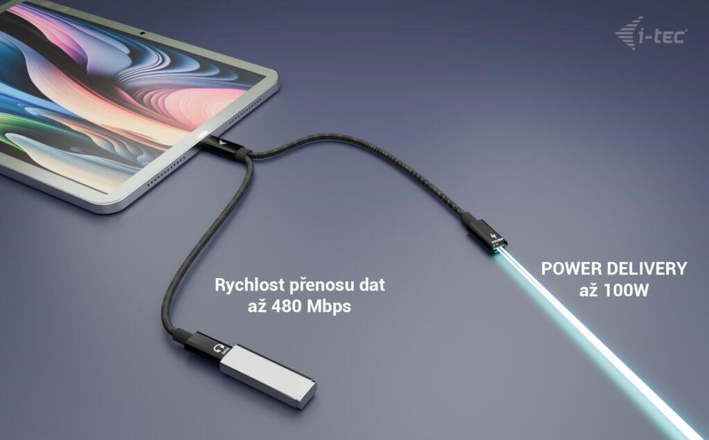 - Podpora Power Delivery až 100 W – Ideální pro rychlé a efektivní nabíjení notebooků, tabletů a chytrých telefonů.