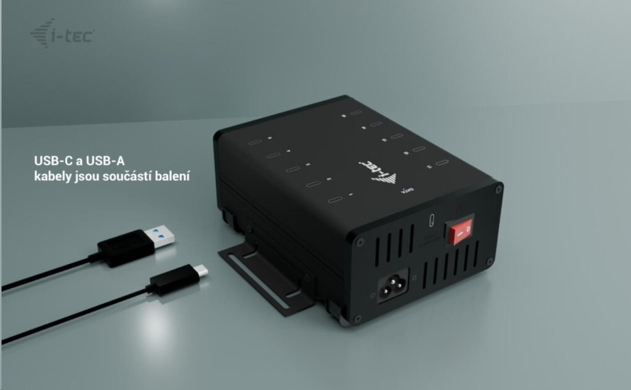 - 10x USB-C port, všechny podporují 15 W nabíjení