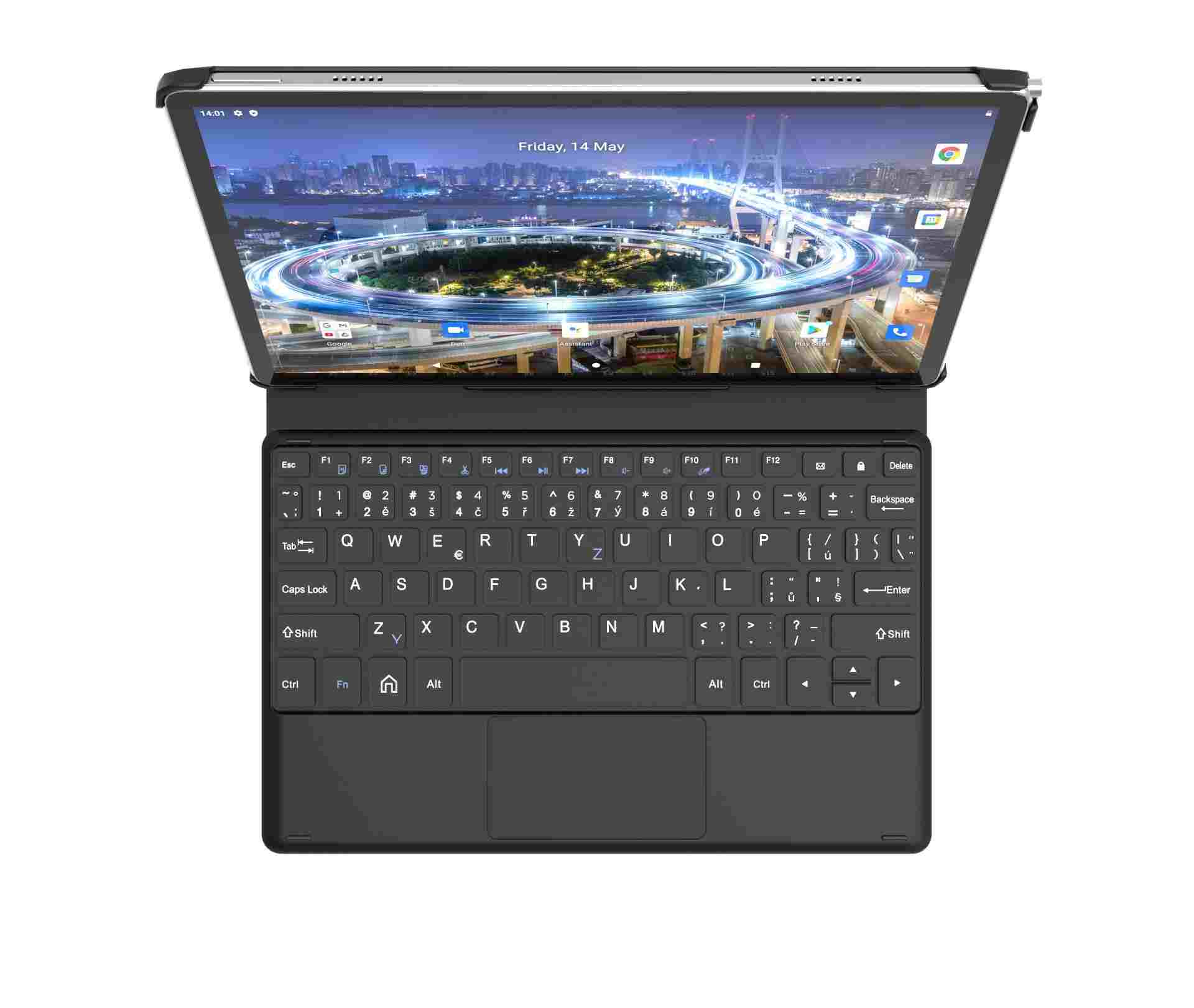 Pouzdro s klávesnicí iGET K206 je ideálním řešením ochrany vašeho tabletu iGET SMART L206 proti poškrábání a zároveň rozšiřuje možnosti jeho uplatnění prostřednictvím externí klávesnice. Jednou z hlavních předností je jeho přesné uchycení pro tablet iGET SMART L206. Po vložení tabletu do klávesnice je tablet propojen s klávesnicí pomocí pogo pinů. Klávesnice umožňuje plnohodnotněji využívat váš tablet, zejména pro pracovní účely, kdy nepotřebujete byt vybavený klasickým počítačem nebo notebookem a zároveň nechcete dělat kompromisy. Pouzdro dobře poslouží i jako stojánek při sledovaní videí a oblíbených filmů, kdy nemusíte tablet držet neustále v rukách. Konstrukce pouzdra s klávesnicí iGET K206 umožňuje přístup ke všem konektorům bez nutnosti vyjmutí tabletu ven, což ulehčuje jeho přepojení s dalšími perifériemi, jako sluchátka, externí reproduktory a jiné. Klávesnice má český a anglický potisk. Technické parametry: • PotisK pro CZ/EN rozložení kláves • Pogo piny Rozměry klávesnice: 248 x 167 x 15 mm. Rozměry balení klávesnice: 255 x 172 x 25 mm. Hmotnost: 372 g. Hmotnost včetně balení: 430 g..