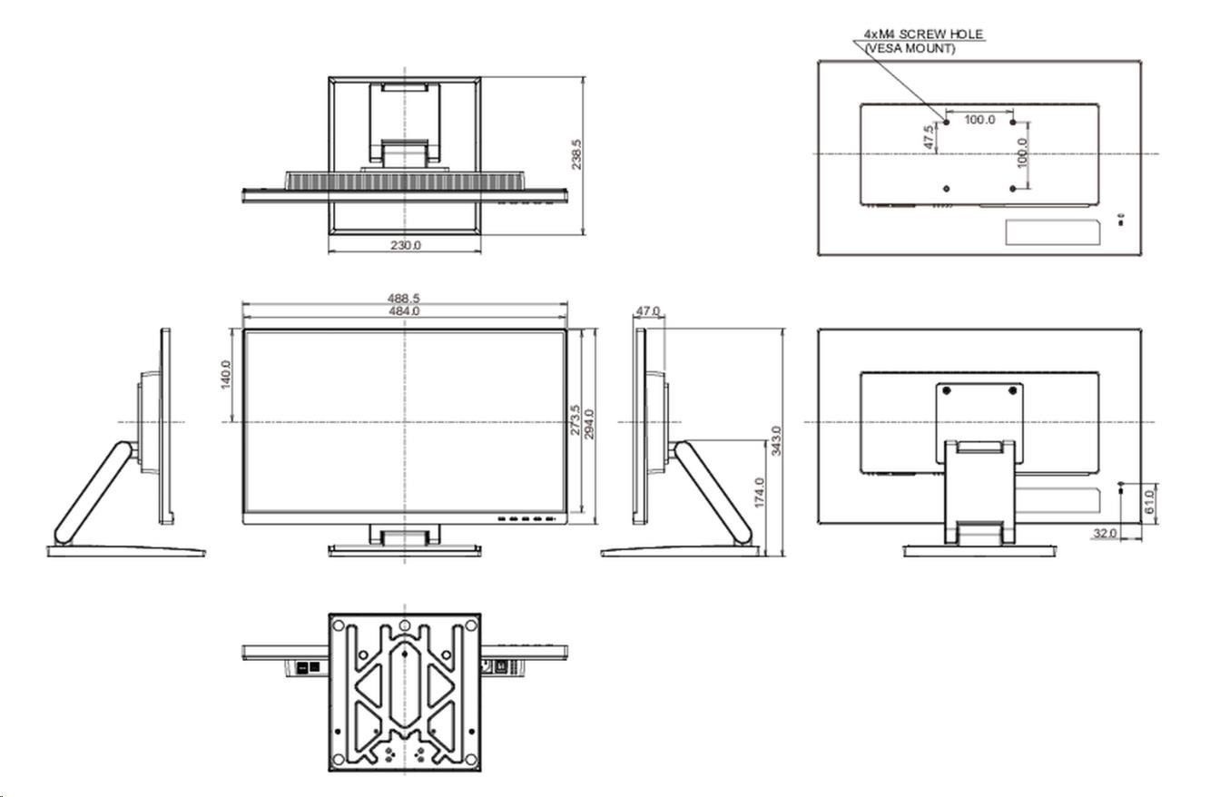 touch monitor (16:9), 54.6cm (21.5''), Touchscreen, Projected Capacitive, multi touch (10 points), 1920x1080 pixels, VESA mount (100x100 mm), 4ms, brightness: 250cd, viewing angle: 178/178°(H/V), contrast: 1000:1, USB (2x), display-port, HDMI, incl.: cable (USB, HDMI), power supply unit, power cable, QSG, colour: black.