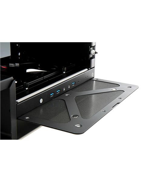Oddělené pozice HDD a PSU zajišťují ideální proudění vzduchu skrz skříň ven zadními větracími otvory, aniž by se odvod teplého vzduchu brzdil o základní desky nebo grafické karty.