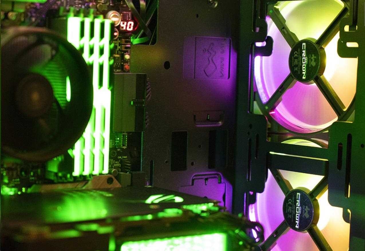 Connect the included addressable cable to the motherboard’s addressable header. The CROWN AC140’s radiant lighting effect can be beautifully and easily demonstrated with a compatible motherboard software.