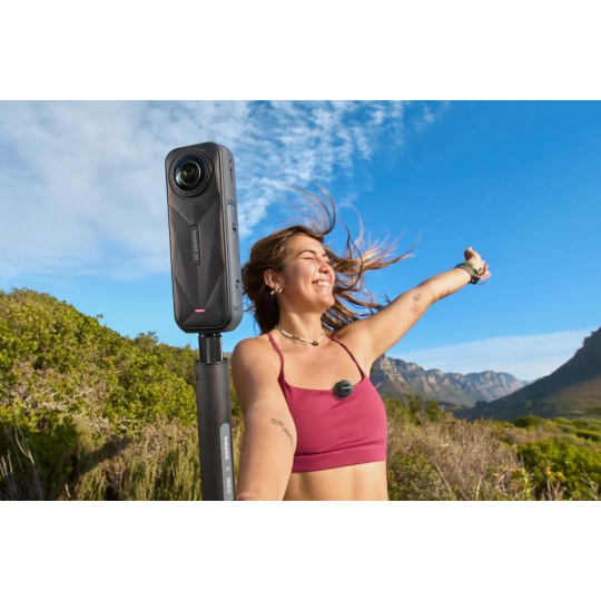 Přímé bezdrátové připojení ke kamerám Insta360 X5, Ace Pro 2. Mikrofon využívá Bluetooth Low Energy.