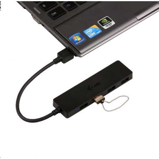 • i-tec USB 3.0 pasivní 4 portový HUB s vestavěným USB kabelem (20 cm)