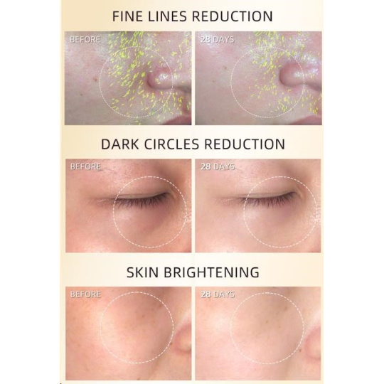 • Klinicky prokázaná redukce vrásek kolem očí o 24,56% a tmavých kruhů o 29,41% za 28 dní.